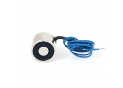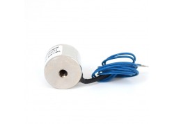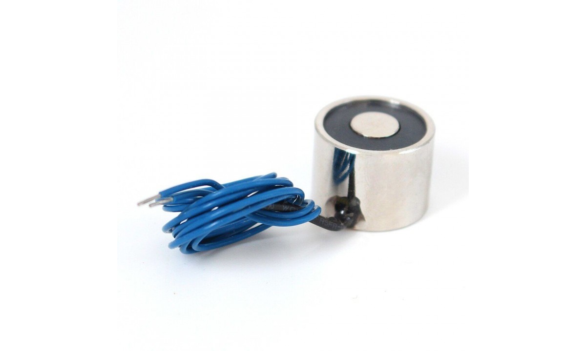 Electroiman para proyectos con Arduino y otras plataformas. Contiene un agujero en la parte de atrás para poder sujetarlo con un tornillo a otra superficie. Debido a su gran consumo de corriente se deberá usar una fuente externa de alimentación de 12V 300mA y no la alimentación de tu Arduino.